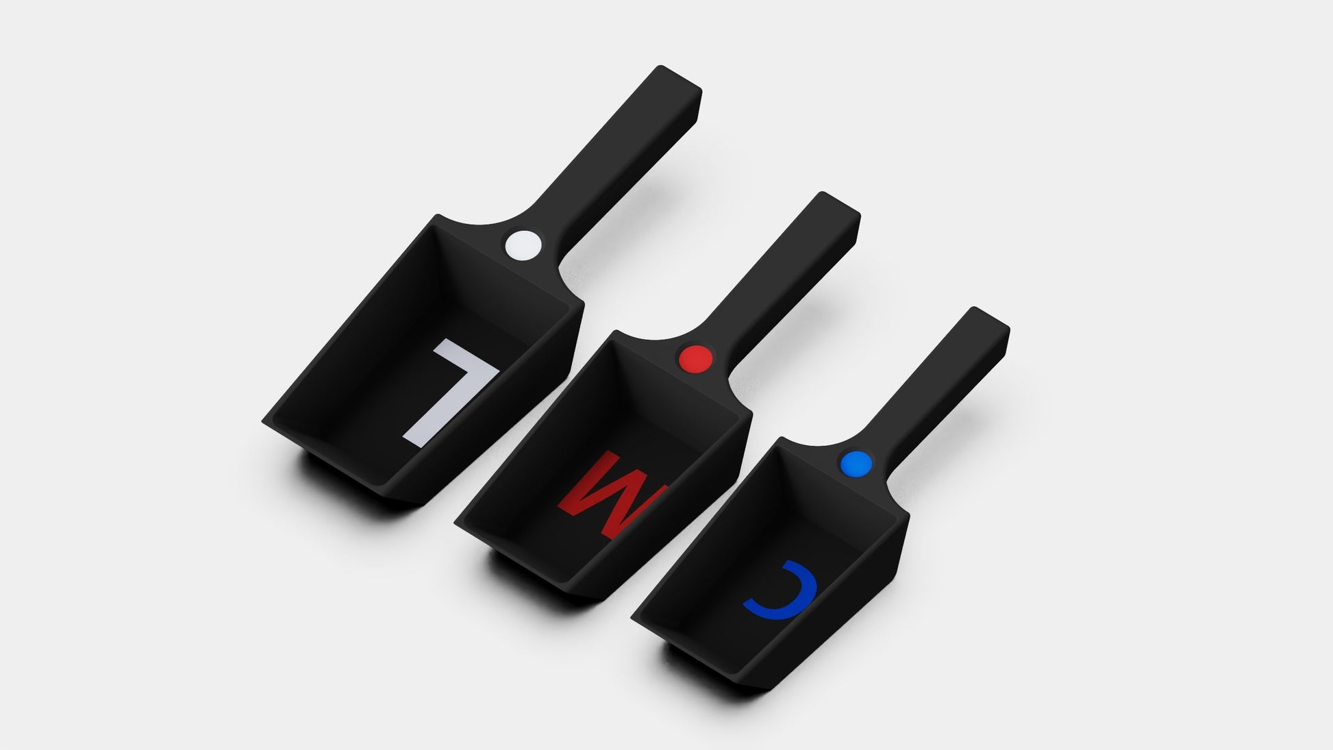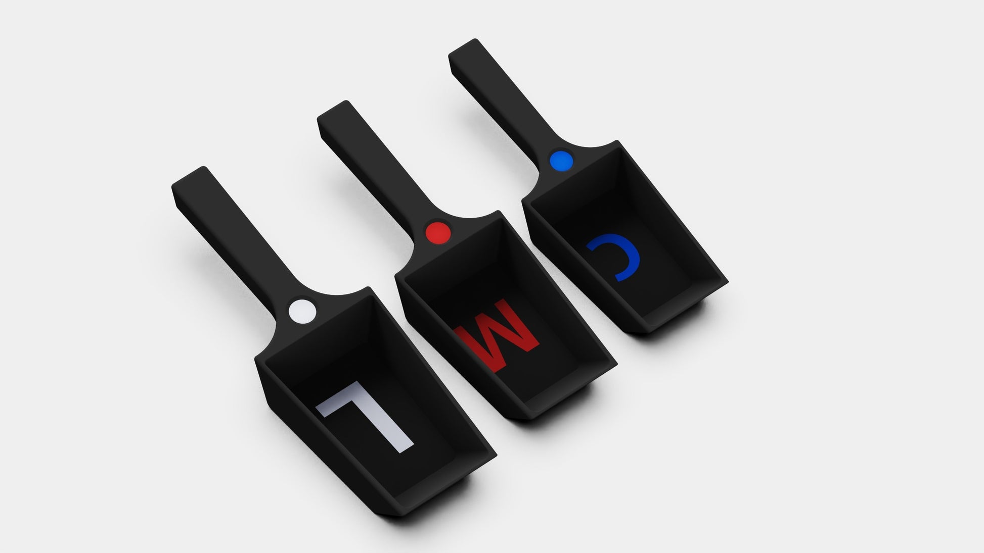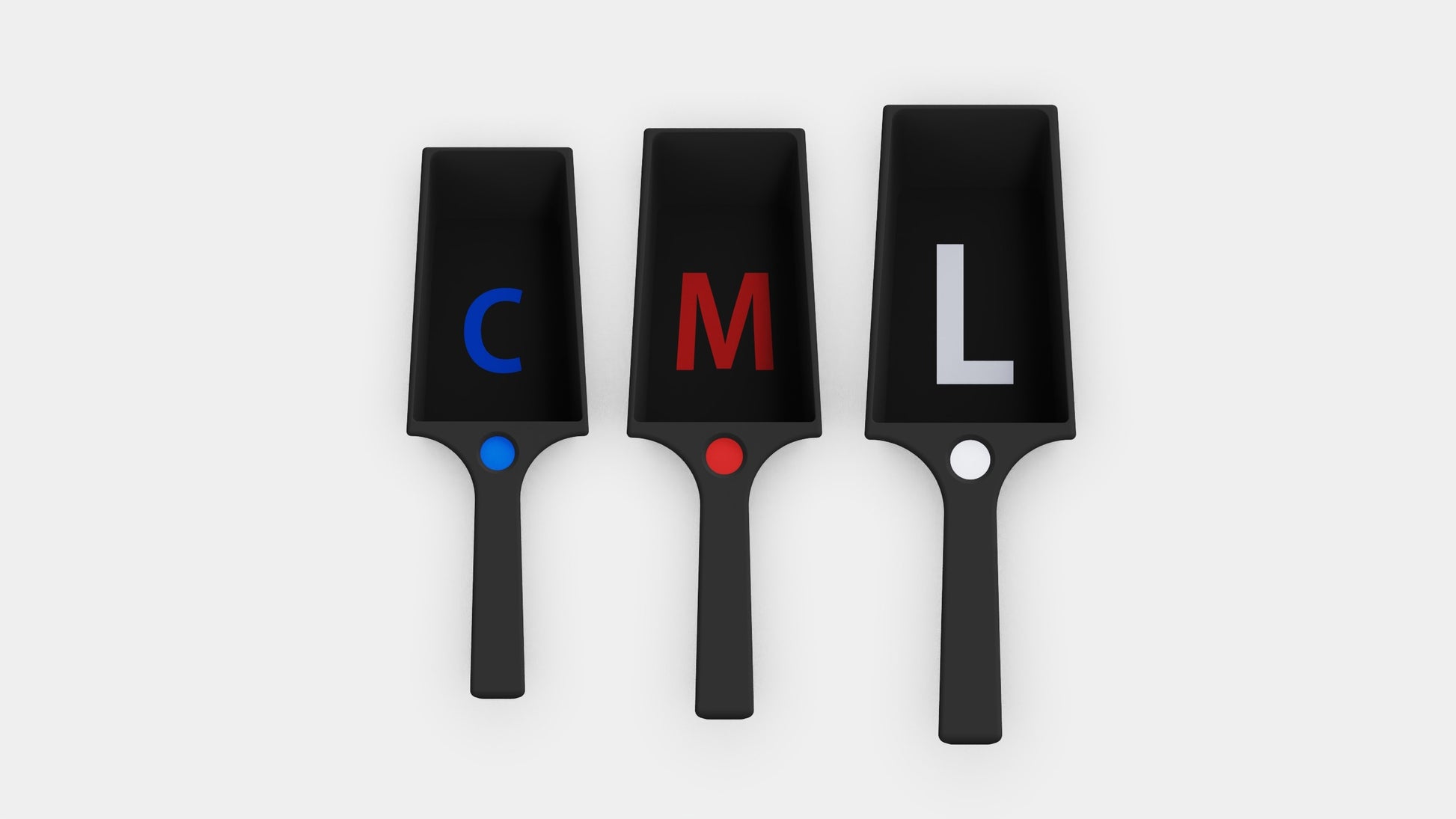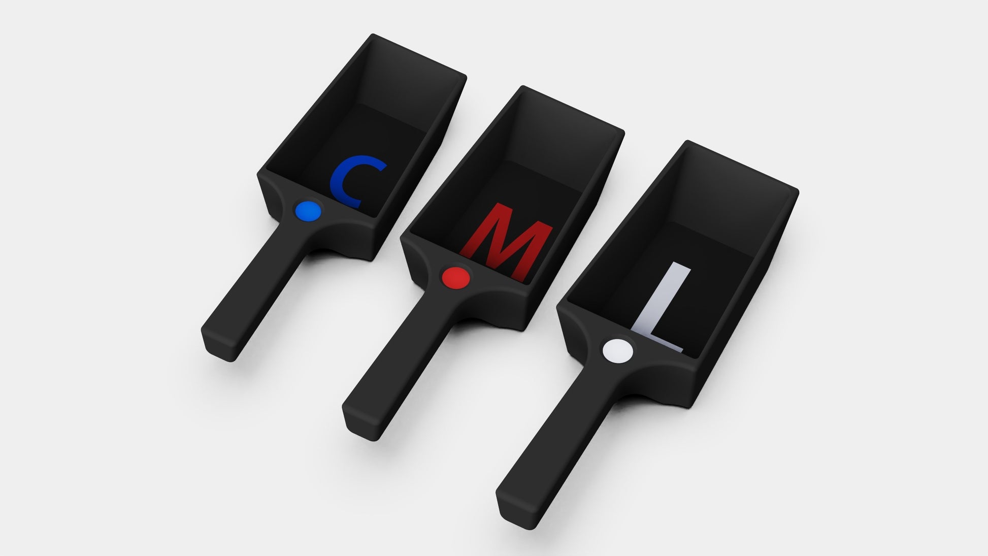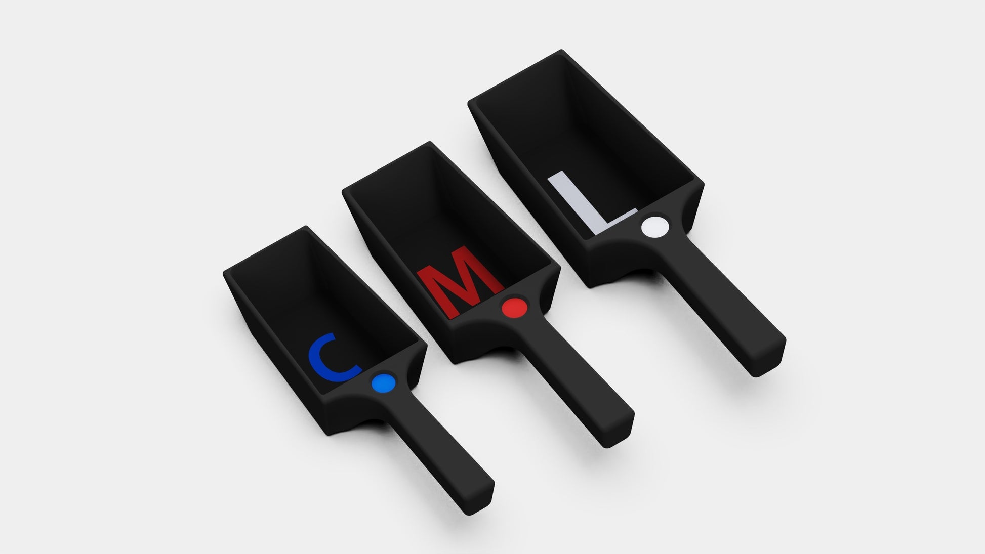 ✅ Set aus 3 Kellen – farblich und mit Buchstaben (C, M, L) gekennzeichnet für klare Zuordnung